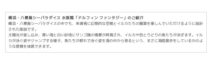 場所 :横浜・八景島シーパラダイス 水族館「ドルフィン ファンタジー」
