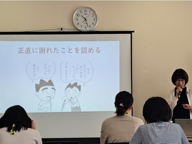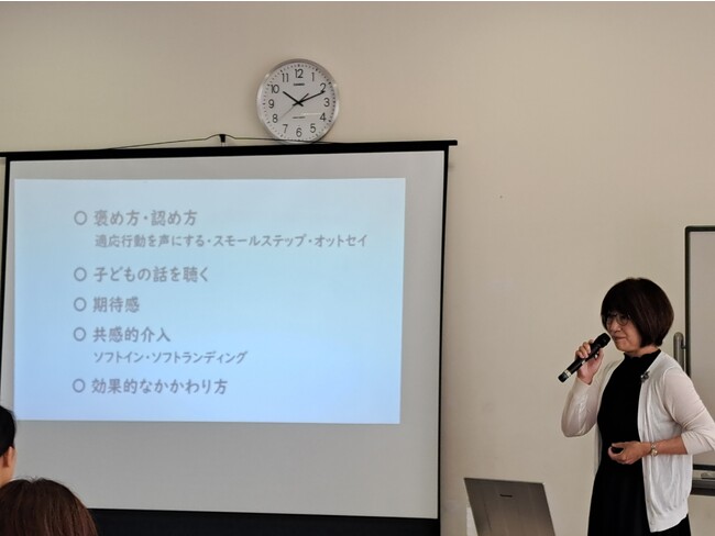 また、親の言っていることを正しく伝えるための工夫を学べたことに意義があったという感想もいただいております。「『ちゃんと』お風呂に入りなさい」「『しっかり』歩きなさい」などの抽象的な表現は避け、見たり、聞いたり、数えたりできる言葉で、具体的かつ簡潔な表現を意識するようにしたいとのことです。