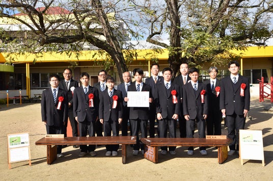 当社が寄贈したCLTパネルを使って多度津高校建築科のみなさまがベンチを設計・制作し、昨年11月に多度津町へ完成したCLTベンチを寄贈する贈呈式を行いました。CLTベンチは多度津町内の学校や公園等の公共施設に順次設置されています。