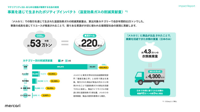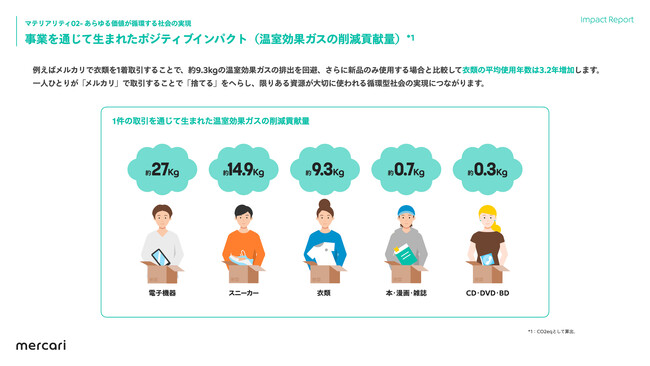 ※参照:「メルカリと東京大学、「メルカリ」の取引による温室効果ガスの削減貢献量を算出」https://about.mercari.com/press/news/articles/20230808_u-tokyo_positiveimpact/