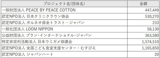 今回は、2023年7月から2024年6月までに販売したプロジェクト商品・約50万点の売上の一部である約400万円を、合計8団体へ寄付金として贈呈します。寄付金は各団体の活動資金に充てられます。