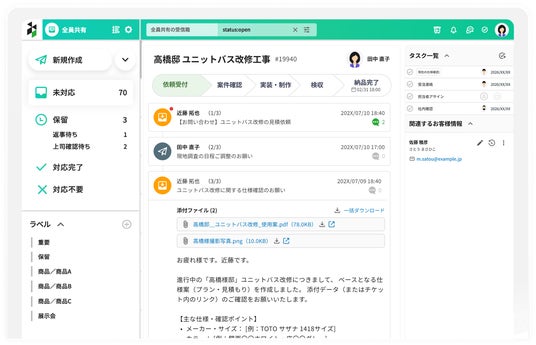 本機能は、日常的に使うメール画面の中で、全ての進捗が完結するシンプルな仕組みを実現します。