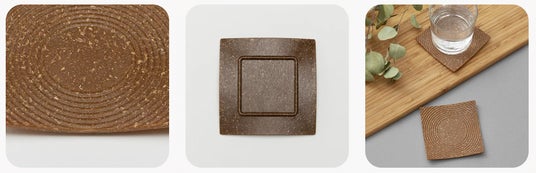 実際に制作できる製品は、廃棄予定のアメニティを30%再利用した、竹の繊維感がおしゃれなエコなコースター。コップが滑らないよう表面に凸凹を施しており、普段使いしやすいよう機能性にもこだわりました。さらに、オリジナルでロゴも入れることができるため、特別感も演出できます。約9cm程度のコンパクトサイズのため、コースターとしてだけでなく小皿としてもご利用いただけます。