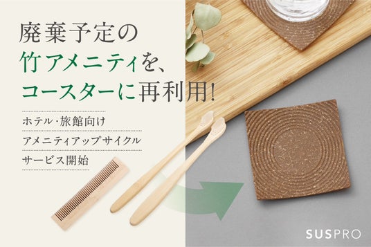 オリジナルグッズを企画製造するアイグッズ株式会社(本社:東京都渋谷区)は、竹アメニティの回収・素材化・製品化を一気通貫で対応する『竹アメニティアップサイクル』サービスを、ホテル・旅館向けに、11月上旬より開始しました。対象のアメニティ製品は、当社が展開するSUS amenity(サスアメニティ)ブランドの竹歯ブラシと竹ヘアコームです。現在製品化できるのはコースターのみですが、今後はバンブーファイバー配合カミソリなどにもアップサイクルできるよう企画を進めております。