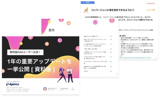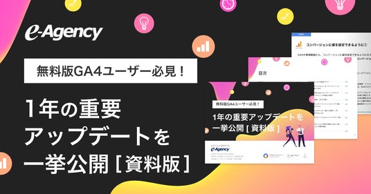 “おもてなしを科学する”株式会社イー・エージェンシー(東京都千代田区、代表取締役:甲斐真樹、以下イー・エージェンシー)は、2024年9月19日、Google アナリティクス 4 プロパティ(以下GA4)の無料版をご利用の方に向けて「【資料】無料版GA4ユーザー必見!1年の重要アップデートを一挙公開」の資料を公開しました。