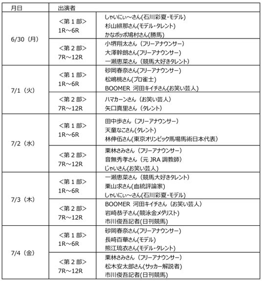 そのほか、6月30日(月)には、フリーアナウンサーの大澤幹朗さん、7月1日(火)には、プロ雀士の松嶋桃さんが初登場、7月2日(水)の前半には、東京オリンピック馬場馬術日本代表の林伸伍さんが出演!豪華ゲストの競馬談義や裏話が聞けるのは「ウマきゅん」だけ!ぜひご視聴ください!