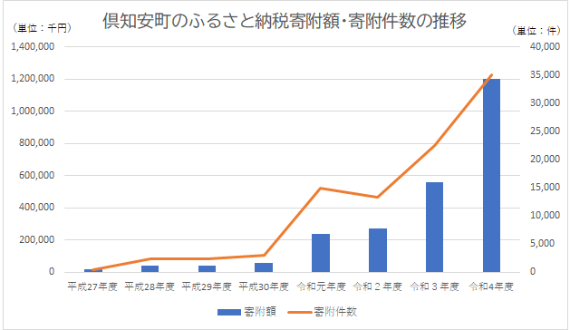 当社が倶知安町のサポートを始めたのは、同町がふるさと納税制度に本格的に取組んだ平成28年度から。当社は倶知安町の取組開始時から、返礼品の開発やポータルサイトの拡大、寄附者へのPRなどのふるさと納税事業を全面的にサポートしてきました。文字町長が就任した令和元年度より、ふるさと納税に対しての軸足をさらに強め、「やれることはとにかくやろう!」と連携サイト先を大きく拡大し、寄附額も大幅にアップしました。その後も更なる連携サイトの拡大、返礼品の拡充など、様々な施策によって令和3年度、令和4年度はともに前年対比200%超え。令和4年度は12億円強の寄附を集めるに至りました。集まった寄附金は町内のインフラ整備や子どもたちの未来のための環境づくりなどに生かしています。今後も町の充実に向けて、サポートしていきます。