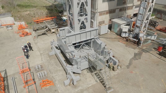 5.タワークライミング時に使用するアウトマスト上部は脱着が可能で、最上階フロアクライミングに必要な台座引き上げの伸びしろを確保することが可能