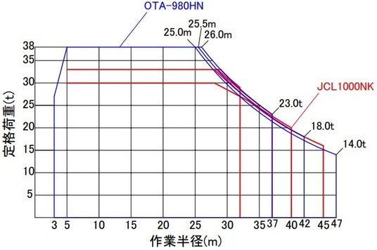 ■「パイロクレーンOTA-980HN」の定格荷重図