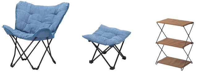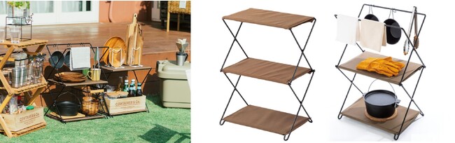 おうちでも外でも使えるアウトドアチェアや、持ち運び簡単なデスク、焚火台、折りたたみラック等のギアを中心に出展予定です。たたむと35mmでコンパクトに持ち運べる3段ラックや、高さが変えられるアウトドアテーブルなど、キャンプを楽しむ方向けの新商品もご用意しております。