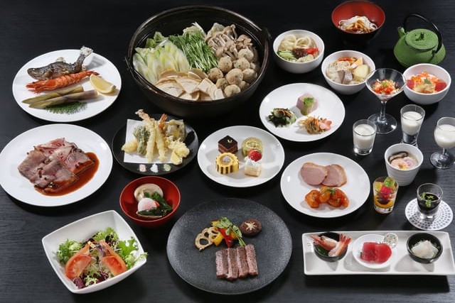 夕食のビュッフェでは、シンプルで質感にこだわった出来立てのグランドメニューと、岩手ならではのご当地グルメをご用意しています。また、チェックアウト後も、日帰り営業時間内で、すべての温泉をご利用いただけます。