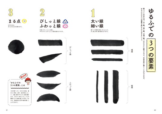 ゆるふでの3要素 太い線・細い線/びしっと線・ふわっと線/まる点