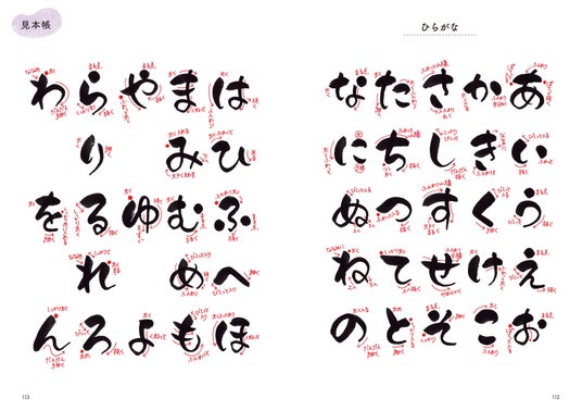 もちろん、筆ペンの使い方や、ゆるふでの基礎もしっかり解説。ひらがな・カタカナ・アルファベット・数字といった基本の文字の見本帳も収録されているから、ゆるふで初心者さんも楽しめます。