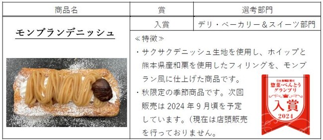 株式会社平和堂(本社:滋賀県彦根市、代表取締役社長執行役員:平松正嗣、以下「平和堂」)は、「ファベックス 惣菜・べんとうグランプリ2024」(以下「グランプリ」)で、地方食材・調理法部門で「近江牛肉巻セット」が優秀賞を受賞、デリ・ベーカリー&スイーツ部門で「モンブランデニッシュ」が入賞しました。