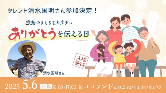 5月6日(火・祝)、山口県宇部市ココランドで開催!タレント清水国明さんと一緒に、感謝の気持ちをカタチにする特別な一日