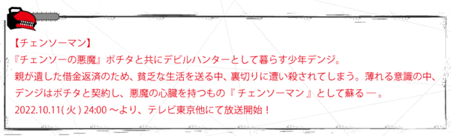 チェンソーマンのキャラクターやロゴをモチーフにデザインしたワッペンを、各アイテムにあしらった限定商品が発売!