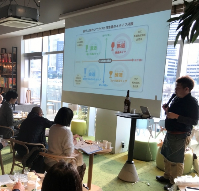 これぞ大人の嗜み!日本酒初心者が知っておきたい日本酒の知識、4タイプの説明や、意外と知らないラベルの読み方、製造の仕方などを丁寧にわかりやすく教えます。講習終了後には、日本酒ナビゲーターの資格をとることができます。
