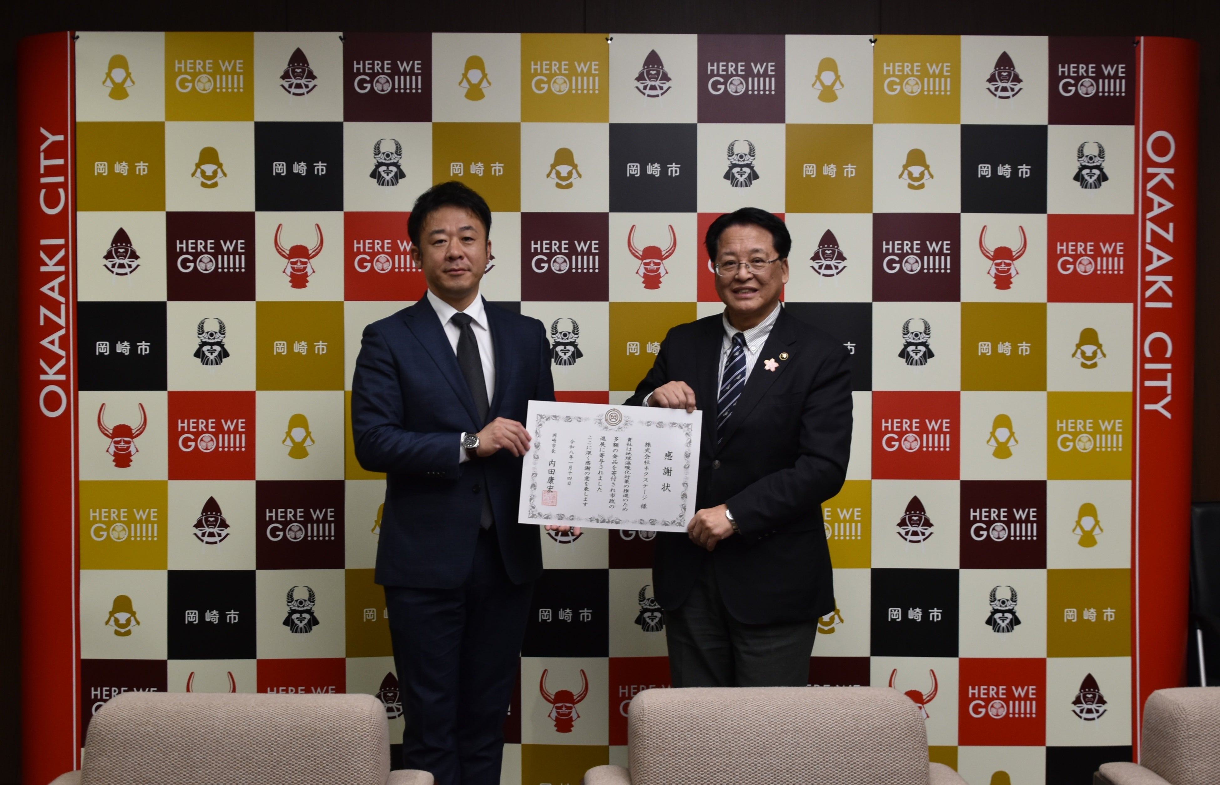 本取り組みに伴い、2026年1月14日に岡崎市役所にて感謝状贈呈式が実施されました。