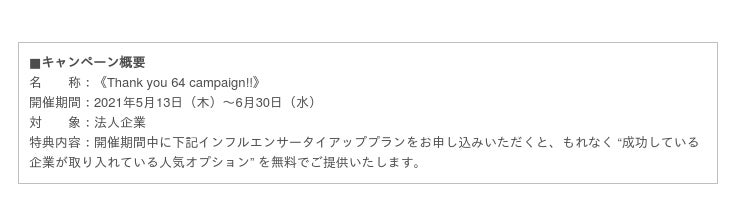 【《Thank you 64 campaign!!》詳細はこちらのDL資料をご確認ください。】
