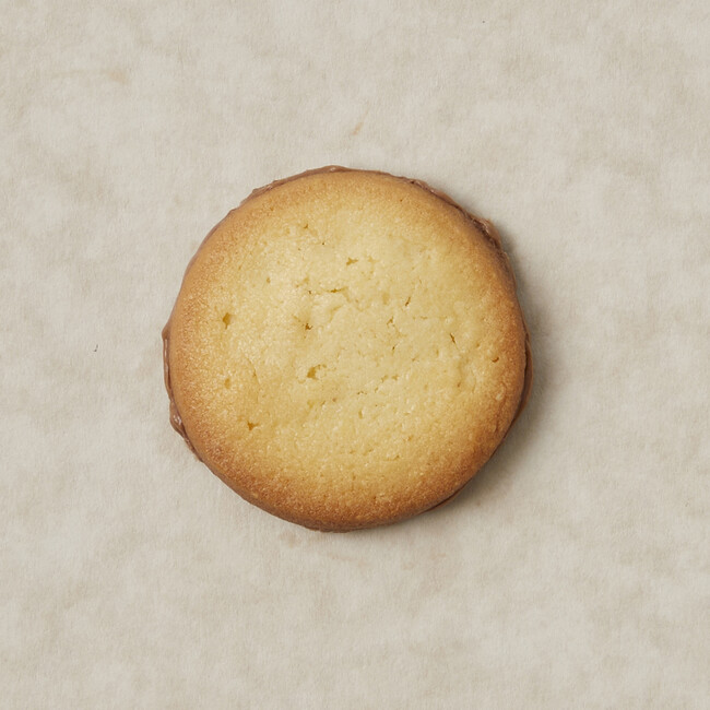 “満月”という意味の“Pleine lune”。アーモンドをふんだんに使った生地を焼き上げ、片面にミルクチョコレートをつけた丸い形のクッキーです。