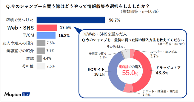 シャンプー購入は「ウェブルーミング」優勢、情報収集はネットでも過半数が実店舗で買う WebやSNSで情報収集した人はポジティブな買い物体験率が高い