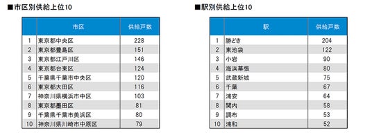 また、市区別、駅別の供給ランキング等も算出しました。