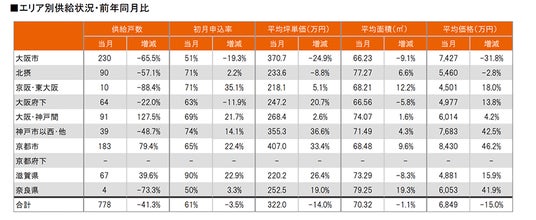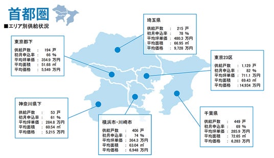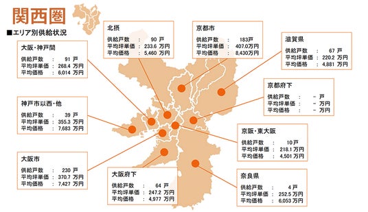 集計対象エリアは首都圏及び関西で、それぞれのエリア別相場情報、需給動向、着工件数等を集計しました。