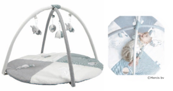 聴覚を刺激する3種類の音が鳴るおもちゃと、視覚発達をサポートする赤ちゃんが大好きな鏡付きのおもちゃで、親子のコミュニケーションを促します。4種類の素材が違うマットには、赤ちゃんが好きなパリパリ音や寝返り応援ミラーが付いていて五感を刺激します。