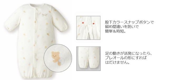 「ベビー帽子」、「長袖ドレスオール」、「ガーゼハンカチ」、「おくるみ」が赤ちゃんアニマル柄で登場します。この秋、かわいい赤ちゃんアニマルたちと一緒にお出かけしませんか。
