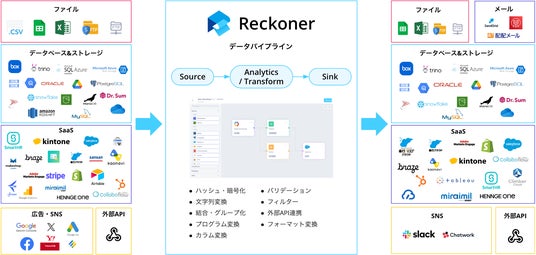 「Reckoner」は、データの集約・加工・連携をノーコードで誰でも簡単に実行できるクラウドサービスです。