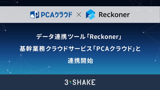 株式会社スリーシェイク(本社:東京都新宿区、代表取締役社長:吉田 拓真、以下スリーシェイク)が提供する、クラウド型データ連携ツール「Reckoner(レコナー)」は、ピー・シー・エー株式会社(本社:東京都千代田区、代表取締役社長:佐藤 文昭、以下PCA)が提供する、基幹業務クラウドサービス「PCAクラウド」とAPIによる連携を開始したことをお知らせします。