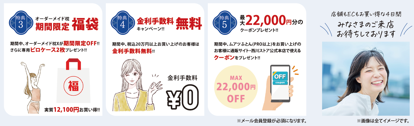 対象店舗:全国の昭和西川直営店および通販サイト「西川ストア公式本店」