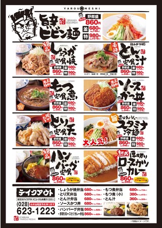 『野郎めし』は、「食」を通じて 『活力あふれる毎日を!』 という想いから誕生した業態で、食欲をかき立てる “絶品おかず” を、ごはんと一緒に “豪快に”、 “腹いっぱい” お召し上がりいただけるお店です。