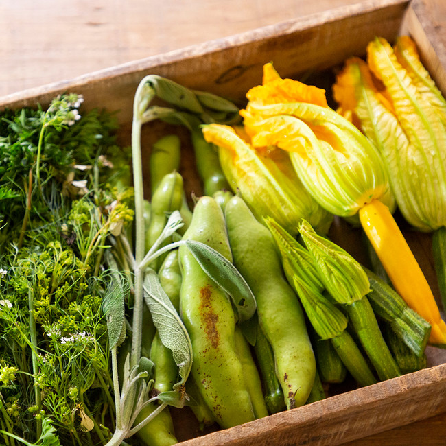 気候風土の育むおいしさを大切にする、和歌山県岩出市『ヴィラ アイーダ』小林寛司シェフとDEAN & DELUCA。同じ想いをもつ両者のご縁がつながり、この夏、3つの「食するよろこび」をお届けします。隣接する自家農園で育てる野菜や果物、ハーブ類と地場の食材を使用し、素材を活かした料理を提供する小林シェフ。そのひと皿は、目の前の食材の魅力をひき出した、独創的かつ、その時期に体が自然と求める味わいです。