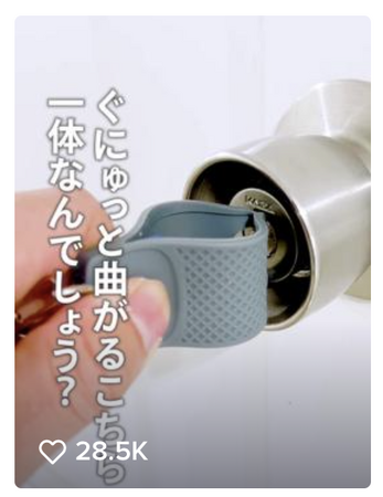 鍵ナンバーの盗難防止、鍵のジャラジャラ音の軽減、静電気の帯電を防止するシリコン製で鍵をすっぽり覆うキーカバーの使い方を紹介した動画。動画冒頭にクイズ形式の演出を取り入れたことでコメント欄が盛り上がりました。TikTok開始初日に配信後、7日で140万回再生、現在は200万再生を突破している人気動画です。