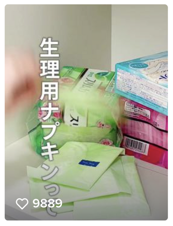 生理用品の自宅での収納方法や、外出時における持ち運びの不便さを、様々な収納用品を使って解消していく動画です。実践的な収納方法やアイディアが支持され50万再生を超えるヒットとなり、多くのユーザーから高い関心を集めました。
