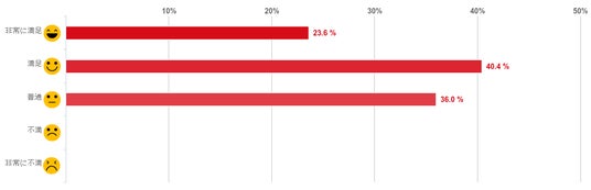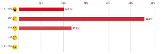 また、「不満」や「非常に不満」と答えた人は一人もいなかった。