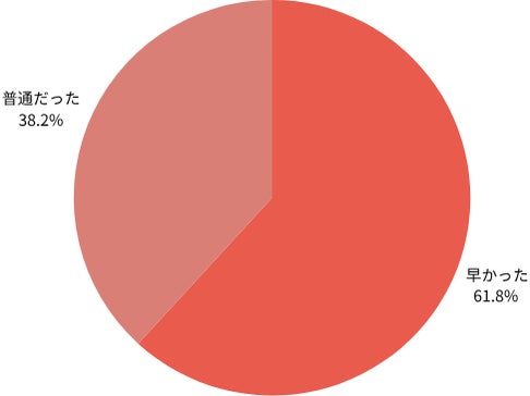 アコムの審査のスピードが「早かった」と回答した人が61.8%で最も多く、「遅かった」と答えた人はいなかった。