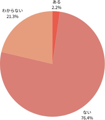 アコムからの在籍確認で周囲に借入がバレたことがある人はわずか2.2%だった。これに対し、バレたことがない人は76.4%、そして「わからない」と回答した人が21.3%だった。