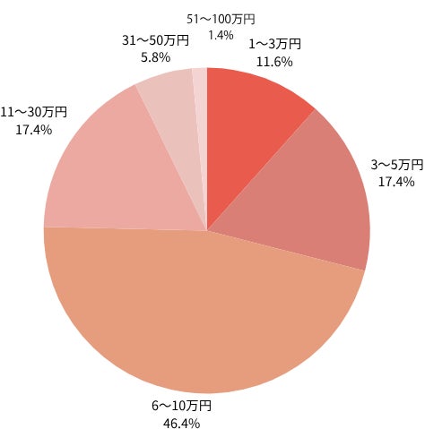 アコムで即日融資を受けた人の借入希望額は「6~10万円」が最も多く、概ね50万円以内に設定していることがわかった。