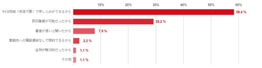 多くのユーザーはアコムがWeb完結で申し込める点や即日融資が可能な点にメリットを感じており、アコムの金利条件が良いと答えた人は僅か1.1%だった。