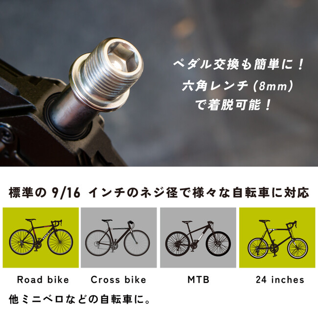 ロードバイクやクロスバイク、MTB、ミニベロなどに。