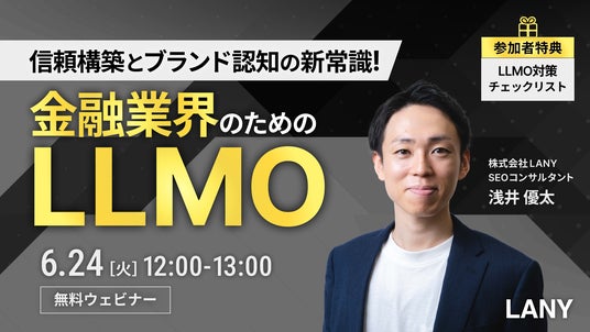 デジタルマーケティング支援を提供する株式会社LANY(東京都渋谷区、代表取締役社長:竹内渓太)は、【無料ウェビナー】金融業界のためのLLMO -信頼構築とブランド認知の新常識!-を6/24(火)に開催いたします。