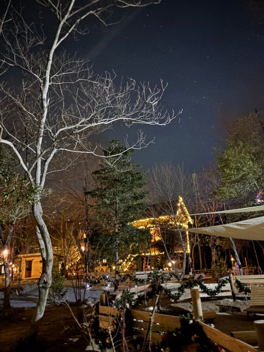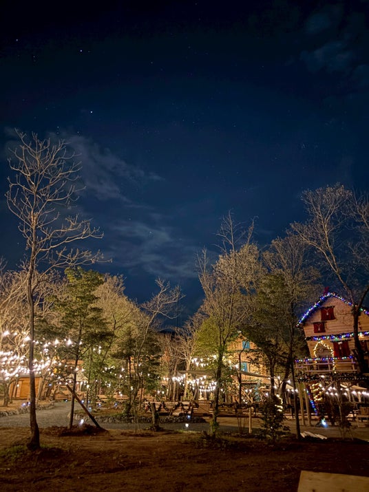 イルミネーションに包まれたツリーハウスで過ごす時間は、