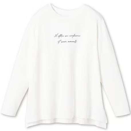 ゆるっと着こなせるドロップショルダーや、抜け感をつくる脇スリットと前後差のある裾で1枚でもこなれて見えます。綿100%で肌にやさしく、インナーとしても着用できます。