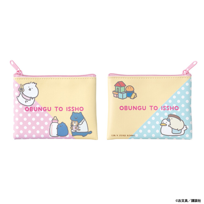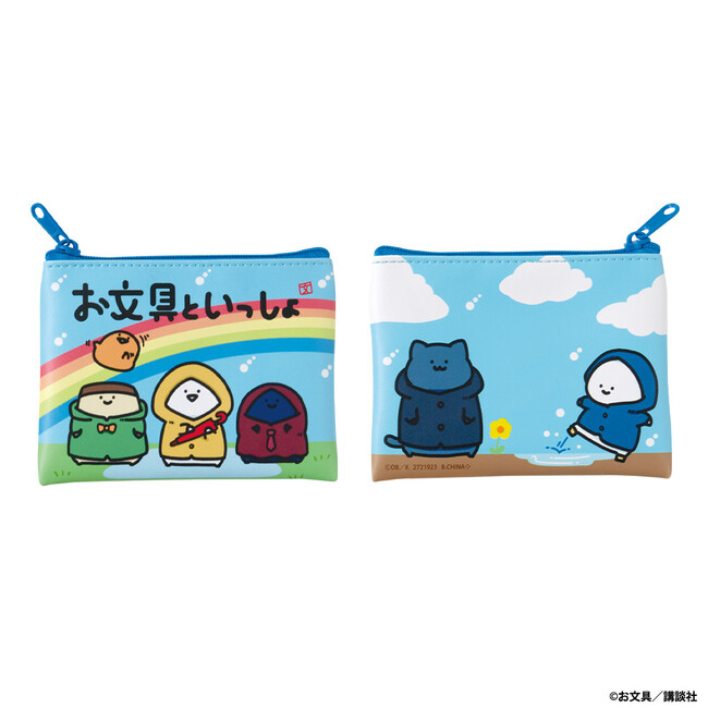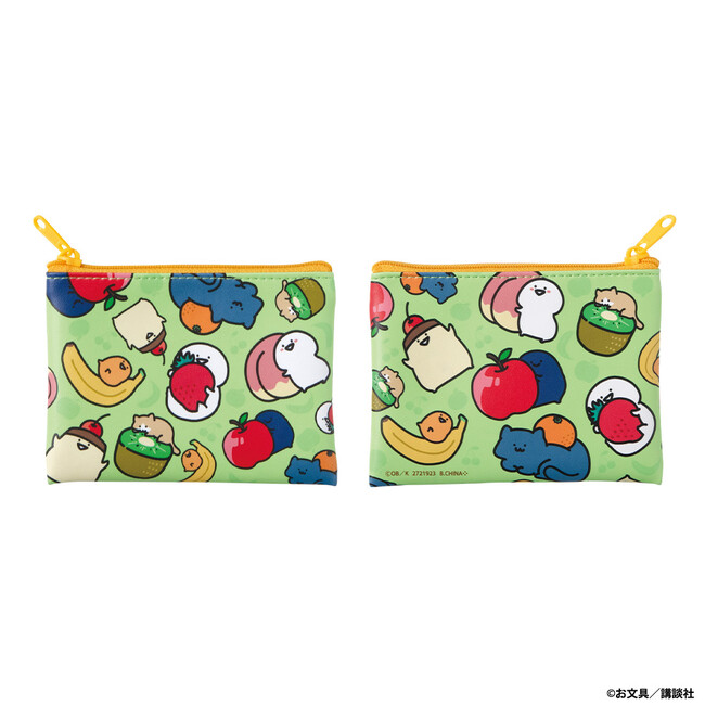 コスメや小物をいれるのにぴったりな高さ約90mm、幅120mmのサイズのポーチは、レインコートをまとったお文具さんたちのデザイン、フルーツ総柄、ばぶんぐデザインの3種。
