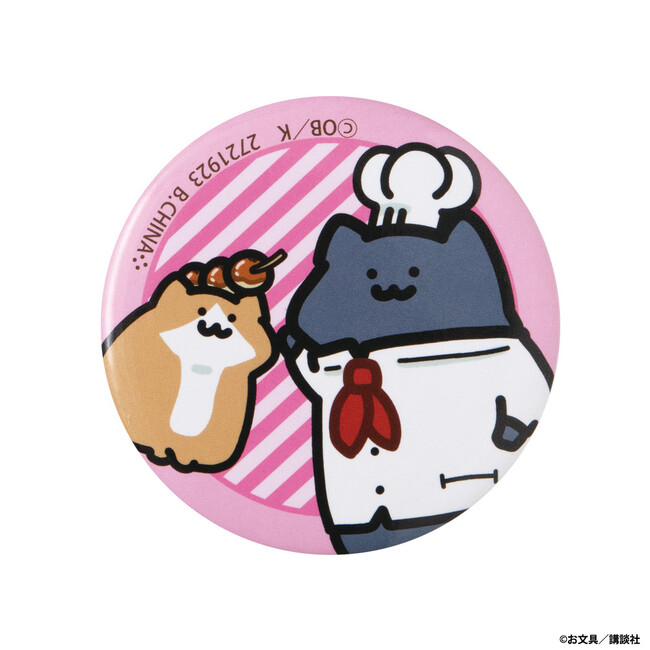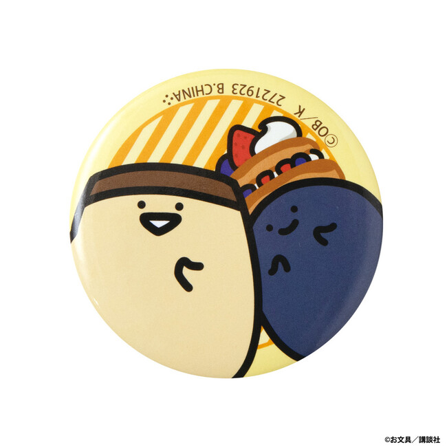 直径約56mmの缶バッジはお文具さんやプリンさんたちがデザインされた4種。