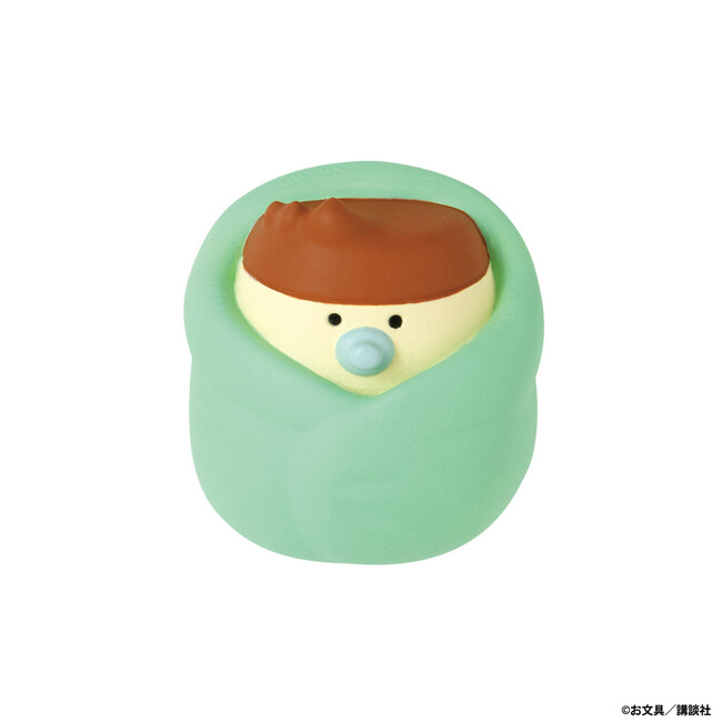 全高約40mmのマスコットフィギュアはお文具さんと、プリンさんがベビコスをした、ばぶんぐデザインの2種。