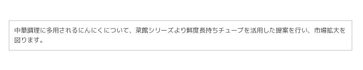 にんにくは利便性の高いチューブ形態容器の商品が顕著に伸長しています。