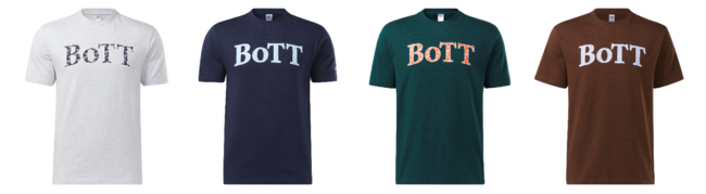 この季節に大活躍のショートスリーブTシャツも登場。「BoTT」の代表的なロゴウェアをリーボックとのコラボロゴでアレンジしたデザインを施しています。「BoTT」の文字が大胆にあしらわれた“OG Logo”と呼ばれるブランドのシグネチャーロゴデザインをベースに、リーボックベクターロゴのリピートパターングラフィックを各フォントの中に配置したユニークなブランドロゴマッシュアップを採用しています(右図)。また、「BoTT」の文字が施された、襟首のプリントもポイントのひとつです。グレー、ブラウン、ダークグリーン、ブルーの全4色展開のため、ご自身のスタイリングに合わせてお好みの1着をお選びいただけます。